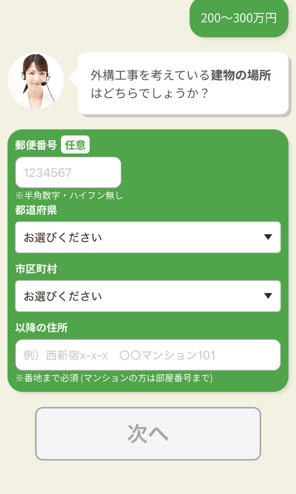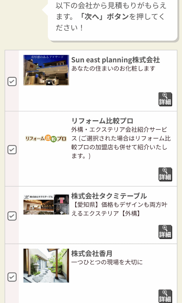 見積もりをもらいたい会社を選び「次へ」ボタンを押します。