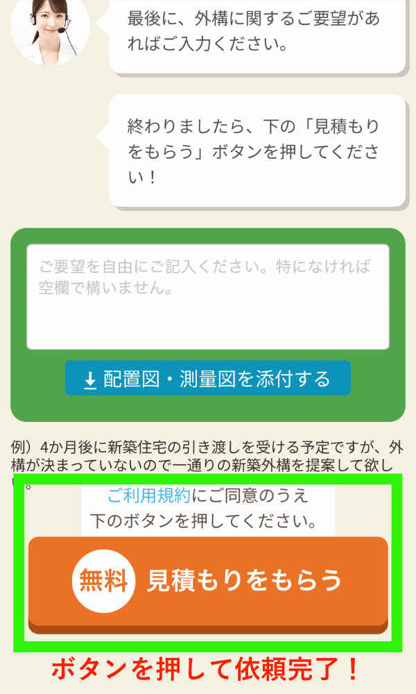 「【無料】見積もりをもらう」ボタンを押して依頼完了です!
